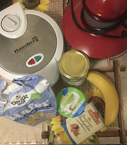 Cine ar fi crezut ca in 15 minute poți pregăti un mic-dejun rapid, gustos și pe placul atat al copilului, cât și al soțului? Aveți nevoie de cateva ingrediente și puțin chef de treaba. Va propun gofre fără lapte, fără oua, fără zahar și fără gluten, dar super delicioase și sănătoase. Eu am folosit ingrediente de baza fără urme ale alergenilor și fără gluten. Dacă nu aveți probleme cu glutenul, puteți folosi ovăz de la orice firma, iar in locul făinii de cocos, puteți folosi faina de grâu. Pentru acestea, aveți nevoie de: