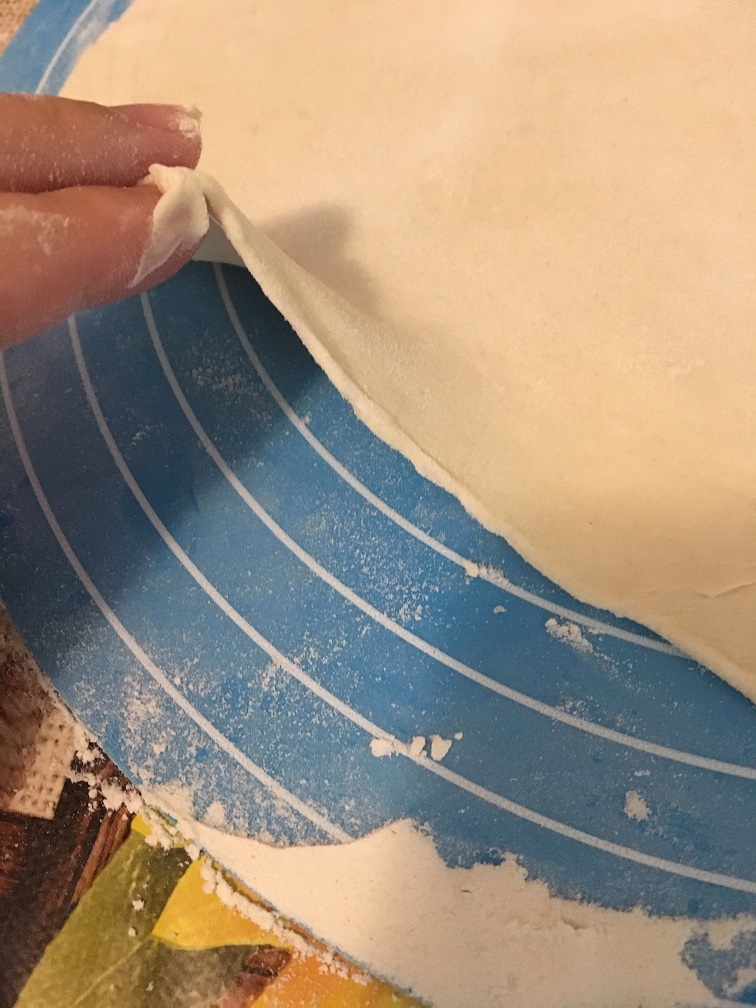 Cât fierbe supa, facem taiteii. Intr-un castron puneti faina cu un praf de sare și amidonul și amestecați. Apoi puneti in mijloc apa și lingurița de ulei. Trebuie sa rezulte un aluat moale, dar nelipicios. Frământam cam 2-3 minute și îl lăsam la odihnit 20 de minute, acoperit cu folie alimentara. După cele 20 de minute, întindeti cu sucitorul aluatul intr-un strat subțire. Masa de lucru trebuie presărată din belsug cu faina, la fel si aluatul. Taiteii noștri nu pot fi taiati precum clasicii cu ou, adică făcuți sul, pentru ca se vor lipi. Așadar, taiati cu un cuțit cu lama fina, taitei subțiri și puneti-i intr-un castron unde aveți faina, pentru a-i tavali bine bine, exact ca in pozele atașate. Pe măsura ce ii taiati, ii și puneti in castron și ii tavaliti prin faina. Dacă vedeți ca sunt suficienți, coca rămasă, o presărați cu amidon, și o rulați pentru a o congela. Eu așa am făcut. Bun, acum ca taiteii sunt gata, iar supa cu carne și legume a fiert 30 de minute, dam focul mai încet și adăugăm taiteii scuturându-i de faina. Lăsam focul la mic și fierbem cu capacul acoperit încă 10 minute.