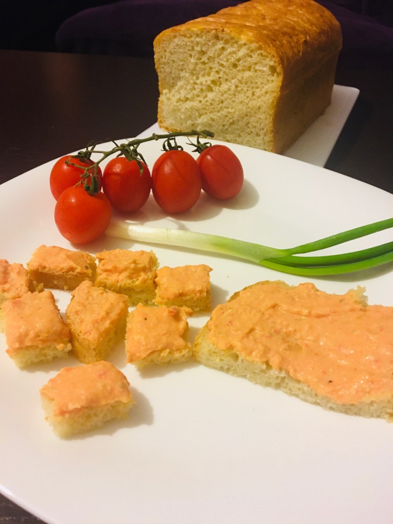 Va propun de data aceasta o crema de pui, care mi-a ieșit atât de delicioasa, încât cu greu am reușit sa fac 2 poze, ca printul s-a înfipt in platou. Ideea acestei creme mi-a venit după de decongelasem niște ficat de pui de la găini de țara cu care voiam sa fac un pate. Însă, pentru ca nu arată bine, am renunțat la idee, dar nu si la ideea de a-i face ceva sățios printului de întins pe pâine la micul dejun. Și uita așa, din carnea pe care o aveam pregătită de supa, am luat 2 bucăți mici de piept de pui și am zis ca-l pasez cu ceva. Acel ceva m-am gândit sa fie ardei, pentru ca era leguma pe care nu o pusesem și in supa. Așa ca din 3 ingrediente principale, ca am adăugat și ceapa, a ieșit o super crema tartinabila, însă prea putina 😅. Așa ca va sfătuiesc sa faceti o cantitate mai mare, mie din aceste ingrediente mi-au ieșit 120 ml de crema de pui. Am servit-o cu pâinea noastra de casa fără frământare https://orizonturisprefericire.com/2020/11/23/paine-fara-framantare/, cu roșii și ceapa verde.